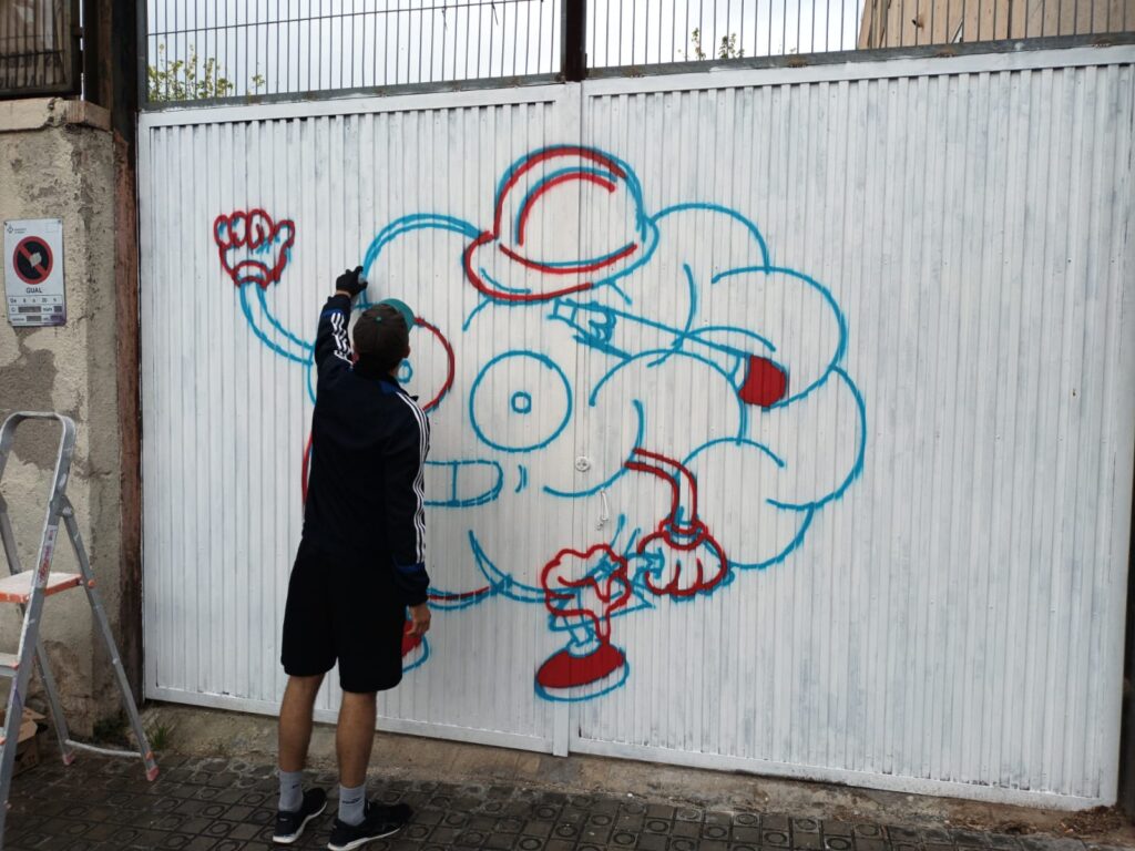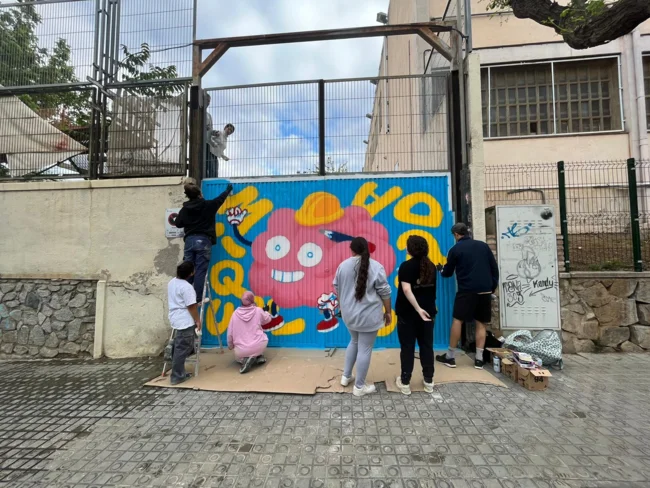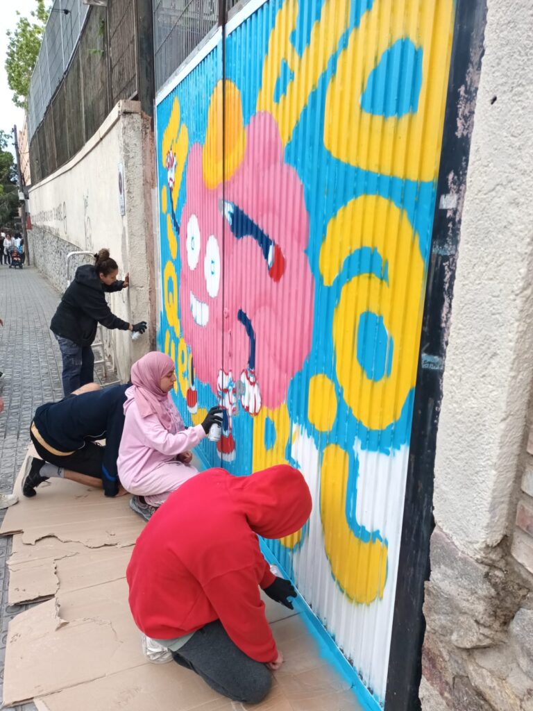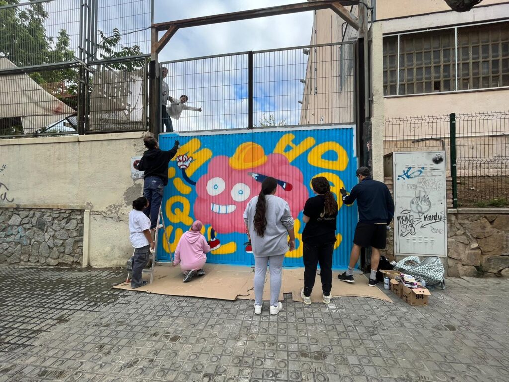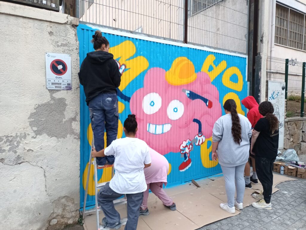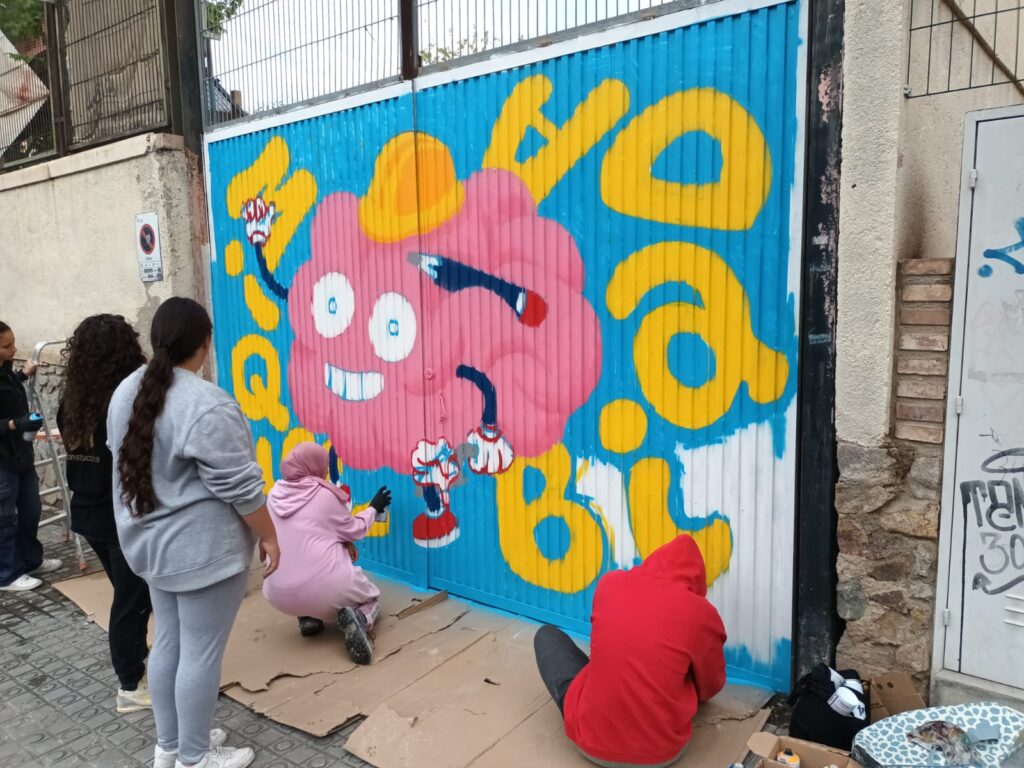Els estudiants de primer de Cicle Mitjà d'Obra Interior han après la tècnica de realització d'acabat decoratiu de grafiti, fent una activitat teòrica i pràctica amb l'especialista EDMON al pati d'obra, realitzant les diferents tècniques i posteriorment col·laborant en l'elaboració d'un mural a la porta de l'institut.