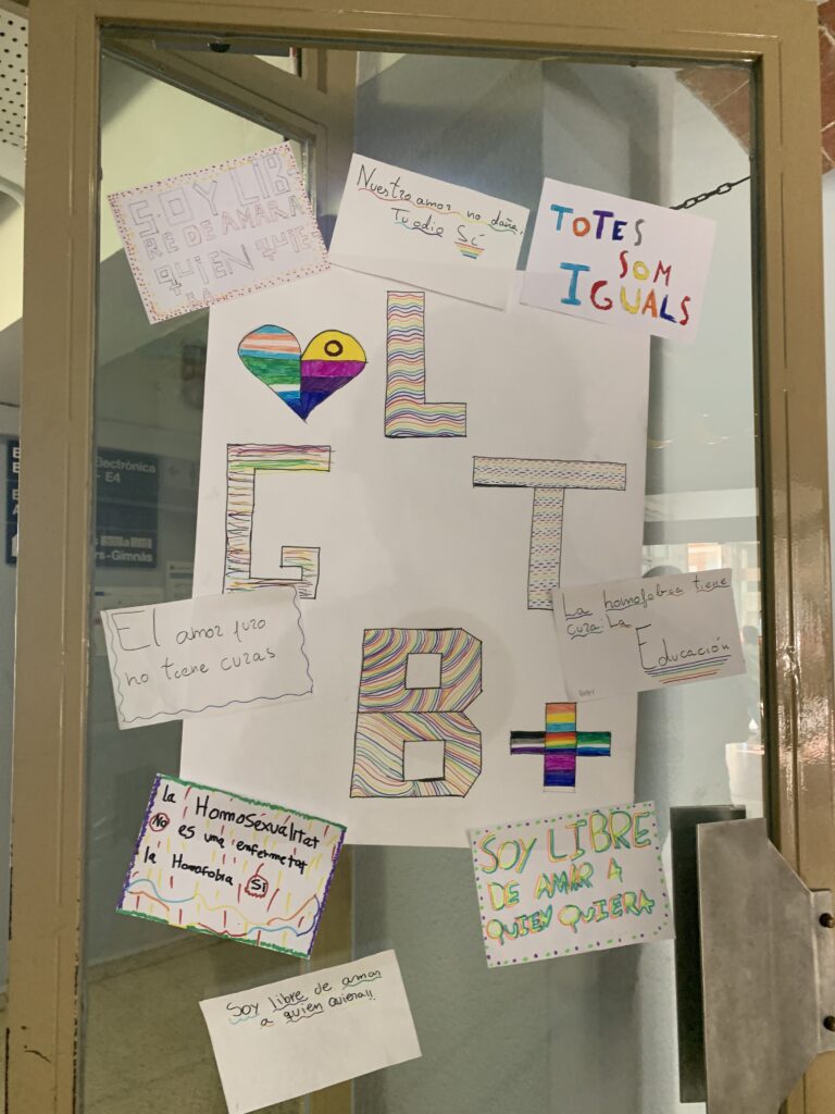 El 17 de maig de 1990, la OMS va eliminar la homosexualitat de la llista de malalties mentals. A l’institut, l’alumnat de 1r d’ESO ha volgut donar visibilitat a aquest dia de lluita contra les violències que pateix el col.lectiu LGTBI+.
