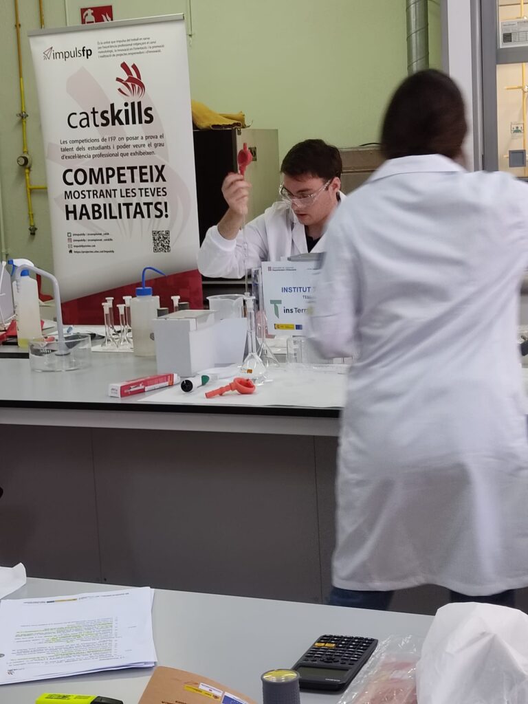 Per altra banda, en Martí Marrot de 1r del Cicle Superior d’Anàlisi i control de qualitat ens va representar a l’skill 52 – Laboratori d’anàlisi química, que es va organitzar a l’Institut Montilivi de Girona. Van participar 9 Instituts i la prova va consistir en determinar quantitativament el ferro que hi havia en un fertilitzant per plantes.