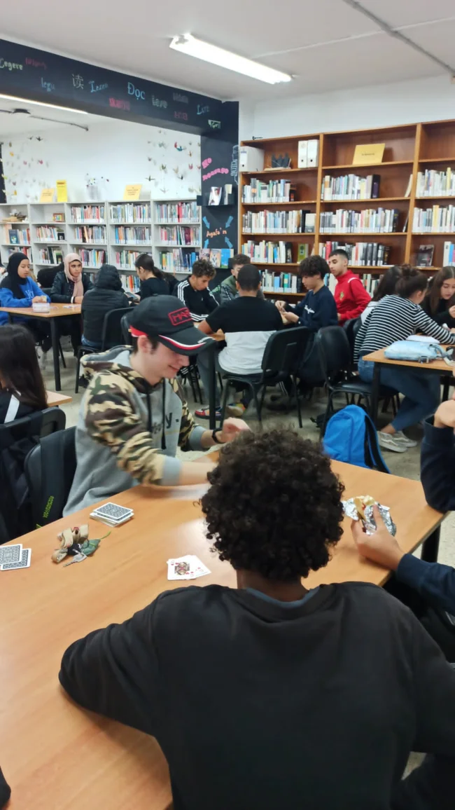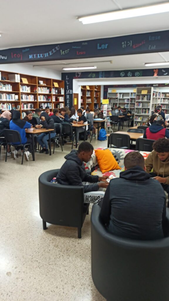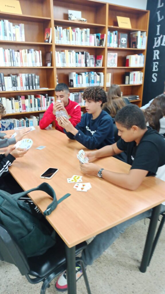 La biblioteca enguany s’ha convertit, a les hores d’esbarjo, en un espai més de lleure. Els alumnes no només poden venir a llegir i fer deures sinó que també poden fer jocs de taula (cartes, dòmino, dobble, mikado etc.). Això sí, mantenint sempre unes formes…