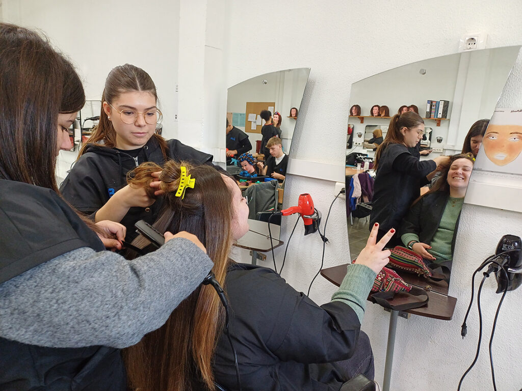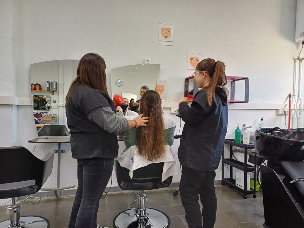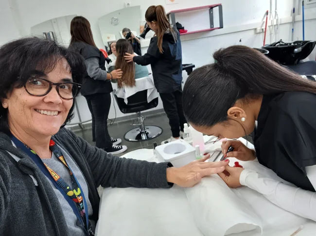 L'alumnat del PFI d'imatge tornant de vacances obriran el saló. Avui s'han estrenat amb gent del professorat. Ens han "fet" les ungles, rentat, pentinat, assecat i allisat de cabells. Us ho recomanem, ens han atès amb molta cura i hem passat una estona molt agradable!