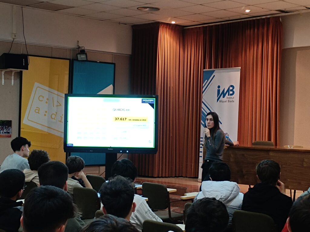 En segon lloc, el 14 de febrer, l'alumnat de CFGM de Carrosseria i de CFGM d'Electromecànica de Vehicles, van tenir una xerrada a càrrec de Laura Ferran, de Quadis, on es presentava l'empresa, la seva història, els diferents tallers que tenen a Cataluyna i País Valencià, la política d'empresa cap a les persones que la formen i què busquen en noves incorporacions de joves, en FPDual.