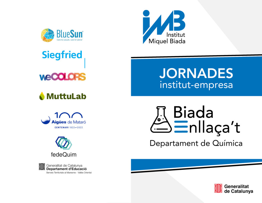 Demà dijous 14 de Març s'inauguren la Jornades Biadaenllaça't, unes jornades institut-empresa organitzades pel departament de química en col·laboració amb la comissió d'emprenedoria i la comissió d'imatge. que pretén ser un espai de trobada entre empresa i institut on poder generar un bescanvi d'informació i mantenir la relació entre el teixit empresarial i el món docent de la FP a les portes d'un canvi de normativa d'aquests estudis.
