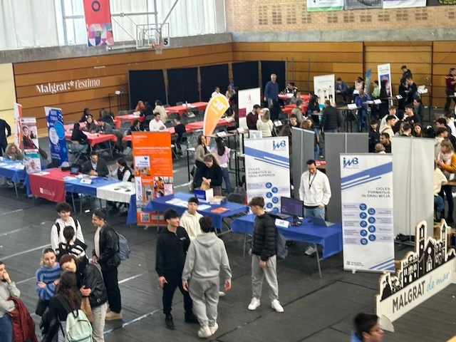 Els instituts de la zona de Malgrat s'han apropat a realitzar un petit tour pels diferents estands i han pogut extreure informació de les diferents etapes que conforma la cerca de treball/pràctiques, tot organitzat per l’Ajuntament. Nosaltres hem atès moltes famílies, alumnat i empreses interessades que s’han acostat a fer preguntes al nostre coordinador de cicles superiors, en Carlos Mingot i Josep Maria Lasheras propi de Malgrat i encarregat del departament Escola-Empresa de l'institut. Ells han aprofitat per explicar amb tot detall la nostra oferta formativa. Un èxit!