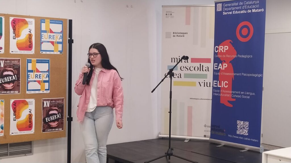 El passat divendres 15 de març va tenir lloc a la Biblioteca Popular la XV Mostra Eureka! de treballs de recerca d'humanitats i de ciències socials, dos dels nostres alumnes de 2n de batxillerat de la modalitat Humanística-Social, Daniel Penas i Fabiola Pérez, van presentar els seus treballs de recerca, juntament amb altres estudiants de diferents centres de Mataró.