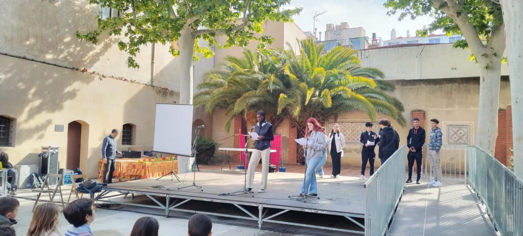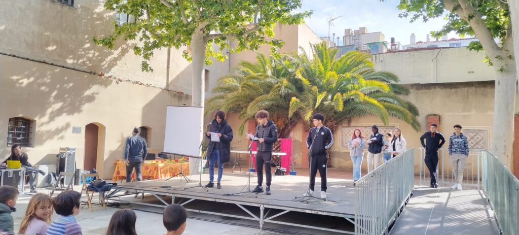 Durant la diada de Sant Jordi d'enguany, alumnat voluntari de 3r d’ESO, 4t d'ESO i de 1r d'ESO de l’Aula d’Acollida han participat en la mostra “Molt més que llegir”. En aquesta primera edició han participat centres de primària, secundària, escoles d'adults, centres d'educació especial i famílies de tot Mataró que ens han mostrat la diversitat de maneres en què podem gaudir de la lectura.
