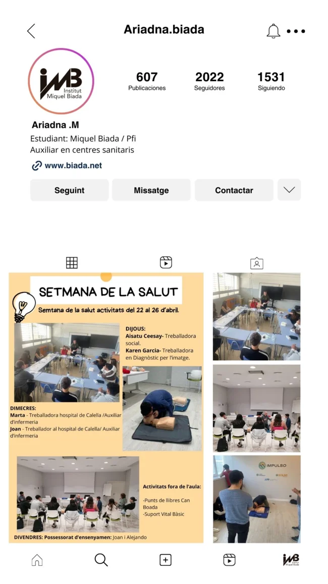Del 22 al 26 d’Abril del 2024 vam organitzar la setmana de la salut al nostre institut Miquel Biada, la setmana va constar d’unes xerrades i tallers.