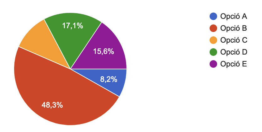Felicitem i agraïm també a en Joel Domínguez (Opció A), la Carla Godoy (Opció C), a l'Omar Benallal (Opció E) i a la Jone Roigé (Opció D) la seva participació.