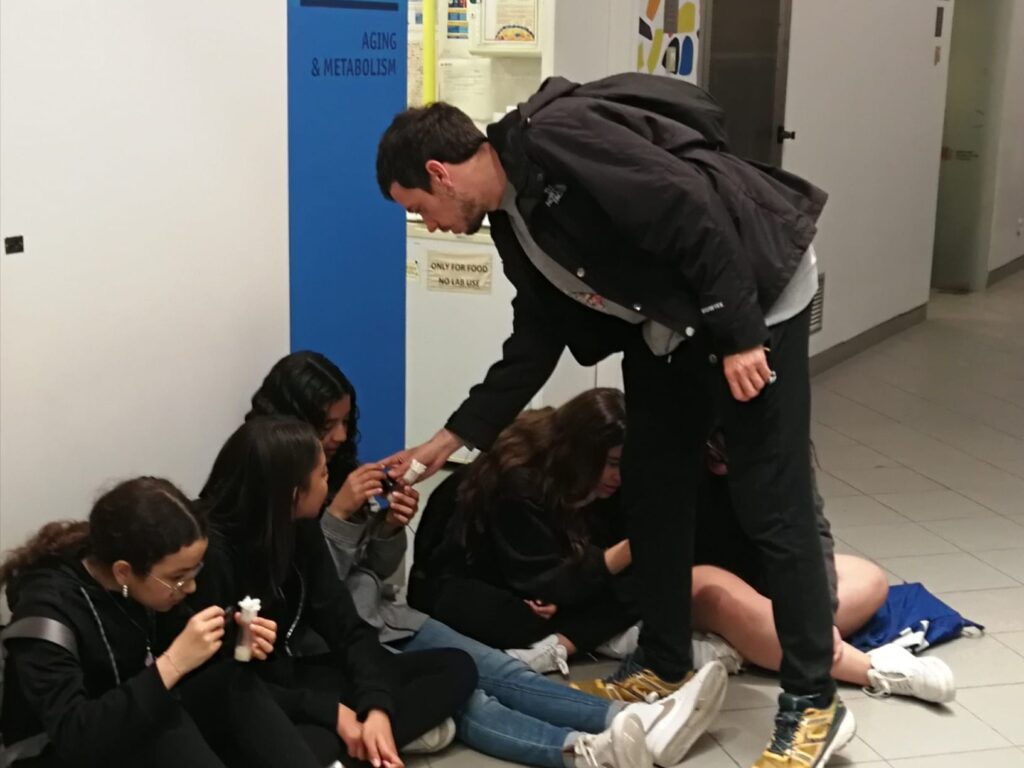 També vam anar a l'aula de divulgació i ens van fer experiments per explicar-nos què estudiaven tants científics junts: nanotecnologia aplicada a la medicina. Resulta que estan estudiant com fer càpsules de medicaments perquè només actuin en l'òrgan malalt i així no intoxicar la resta del cos. Nosaltres vam fer càpsules de Cocacola!.