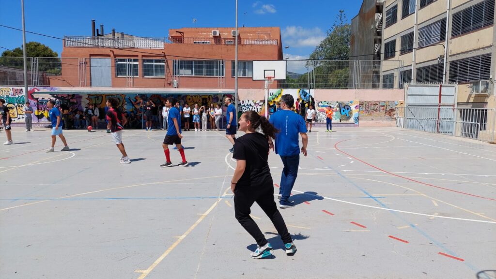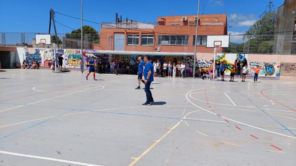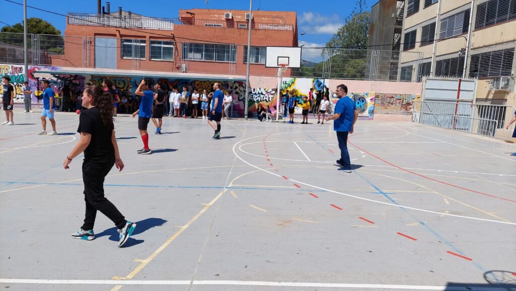 El pati estava ple de gom a gom. L'alumnat d'ESO esperant el partit alumnes profes. Professorat i alumnes animant i cridant cada vegada que hi havia una ocasió de gol. La Salma va marcar per part dels alumnes i Omar BenMusa va empatar el partit per part dels profes. Invasió de camp, cridòria i alegria desbordada. Va ser un matinal de futbol i d'espectacle on alumnat i professorat vam passar tots plegats una molt bona estona.