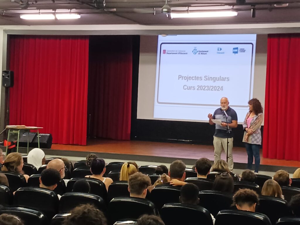 Els alumnes de 4t D, de l’Institut Miquel Biada, han assistit a la clausura de la 17ª edició dels Projectes Singulars de Mataró. Han participat 8 centres educatius i un total de 74 alumnes de la ciutat .