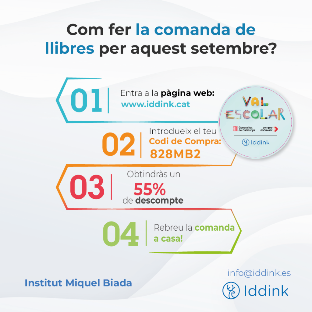 Nota: ALUMNAT de cicles formatius i 1r de Grau bàsic ja estan disponibles els llibres a IDDINK, per fer les comandes seguiu les següents instruccions: