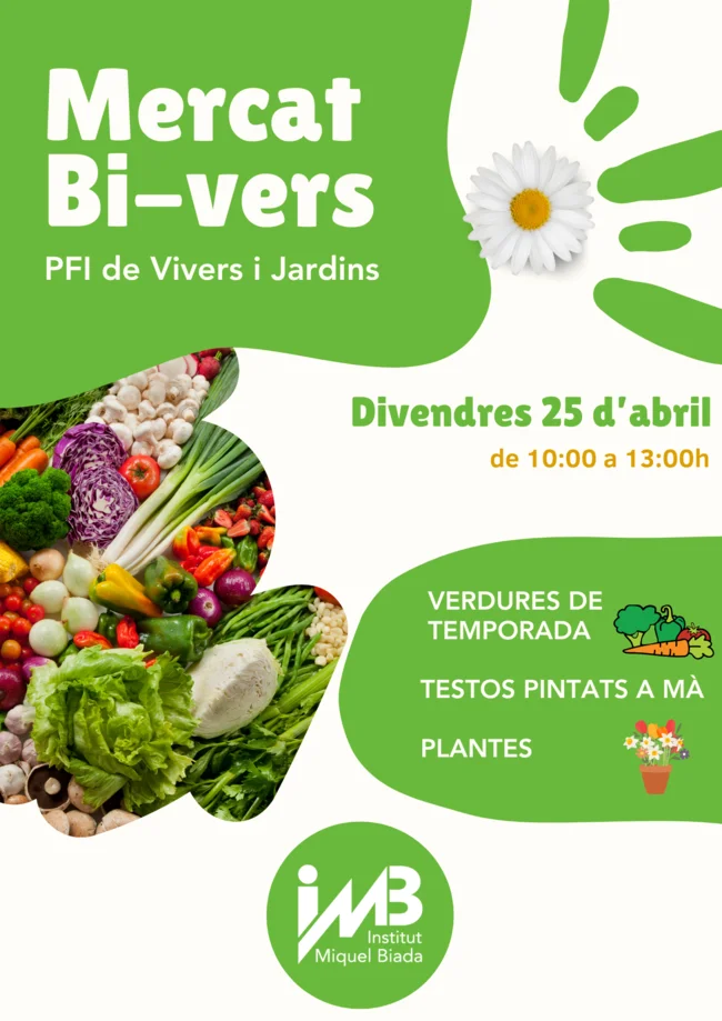 Al PFI de Vivers hem engegat el projecte transversal "Mercat Bi-Vers". Aquest projecte neix de l’interès de l’alumnat en poder posar a la venda la fruita que han collit dels arbres fruiters de l’Institut i les verdures que estan cultivant a l’Hort.
