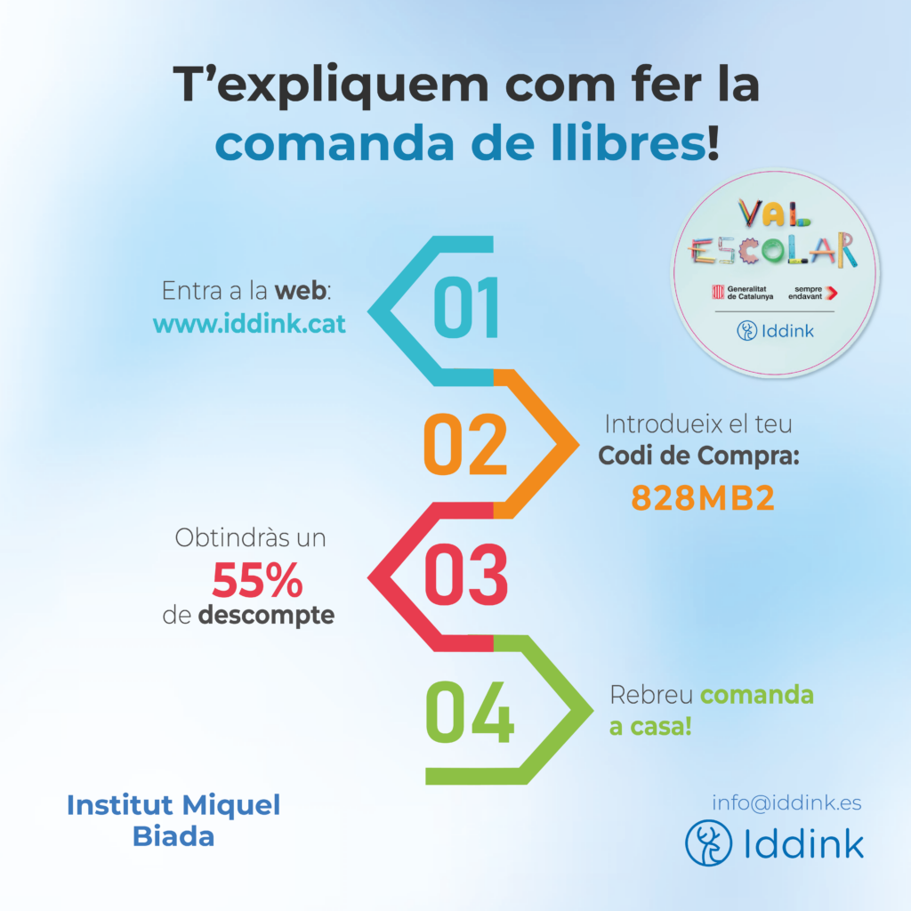 Les famílies del centre educatiu poden fer servir el val escolar a través de la plataforma d’Iddink per comprar els llibres i material escolar que necessiten per al curs 25-26.