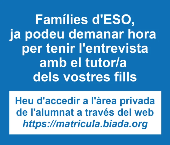 Famílies d'ESO, ja podeu demanar hora per tenir l'entrevista amb el tutor/a dels vostres fills.