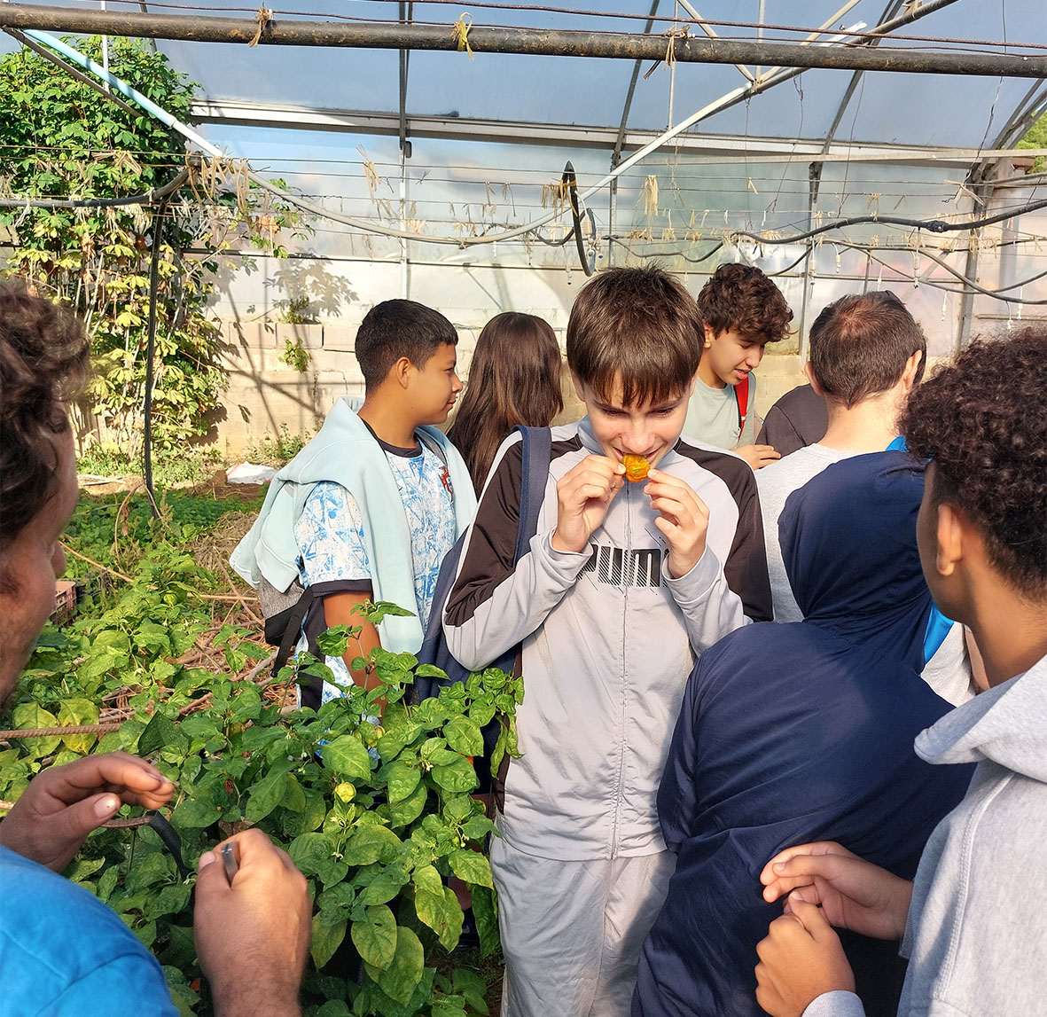 Aquest dimarts les classes de ciències socials de 3r d’ESO es van traslladar a Les Cinc Sénies, on l’alumnat va poder conèixer l’activitat agrària de Can Pruna. Allà, en Marc Pruna ens va fer una classe magistral sobre els seus cultius, que van des de l'albergínia de Mali, la iuca, la papaia, el pèsol o el moniato blanc, fins al pebrot Carolina reaper, el més picant del món! Alguns i algunes ho vam poder experimentar! ![]()