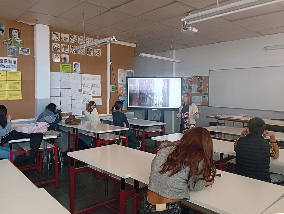 Els esgrafiats formen part del patrimoni artístic i arquitectònic de Mataró. A través de la descoberta i l’anàlisi de diverses façanes de la ciutat, l’alumnat podrà conèixer, comprendre i contribuir a difondre el valor cultural i estètic d’aquesta tècnica tan característica. Per iniciar aquesta investigació, hem fet un recorregut pel barri i hem comptat amb l’ajuda de l’Àngela Guerrero, professora del centre, que ens ha explicat la història del Miquel Biada: des dels seus orígens com a Escola d’Arts i Oficis fins a l’evolució cap a un centre de formació professional destinat a preparar professionals per a les empreses de Mataró. L’Àngela, que va coincidir amb Santi Estrany al centre, també ens ha aportat una mirada personal sobre el seu paper i trajectòria.