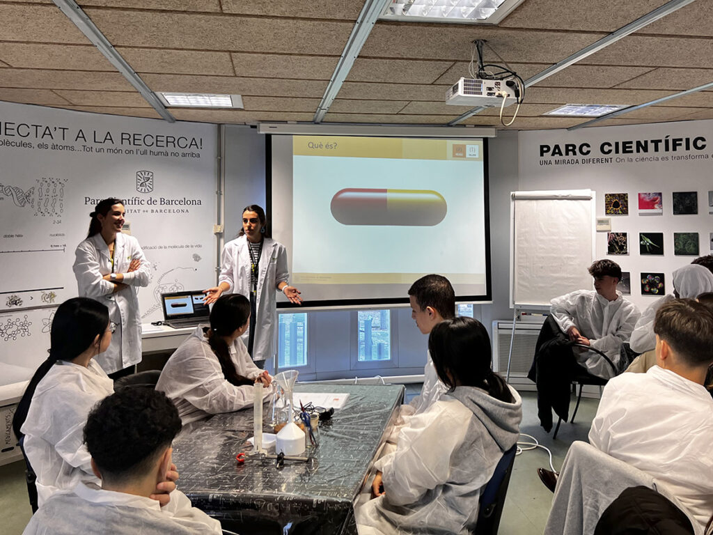 Els alumnes de 1r de Batxillerat de l’optativa Reptes en Física i Química han visitat el Parc Científic de Barcelona per participar en el taller “Com es fan els medicaments?”.