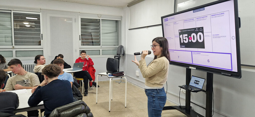 Durant les sessions, i amb l'expert acompanyament de la tallerista Anna Busquets i del professorat del departament, cada equip va treballar en el seu repte aplicant el model de Lean Canvas sostenible. Aquesta dinàmica els ha permès estructurar les seves idees de negoci amb una visió social i mediambiental.