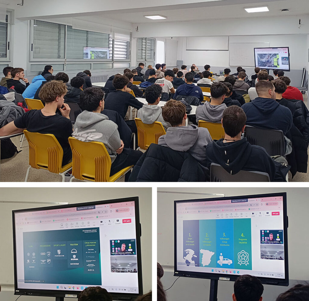 Durant la sessió, es va presentar el programa d’FP Dual, que ofereix pràctiques remunerades a la xarxa de concessionaris i serveis oficials del Grup Volkswagen. També es va explicar que l’alumnat pot accedir a formació addicional de Volkswagen, tant en format online com en sessions presencials, que complementa la titulació oficial amb continguts i certificació específica de marca.