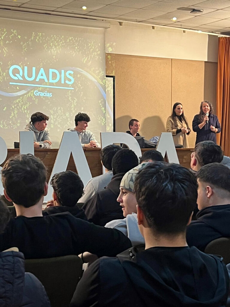 Aquest és el quart curs consecutiu que col·laborem amb Quadis, consolidant una relació que es reforça mitjançant la modalitat d’FP Dual Intensiva. Durant la sessió, la Beatriz ha explicat les funcions i diferències entre les diferents posicions de treball segons els estudis: