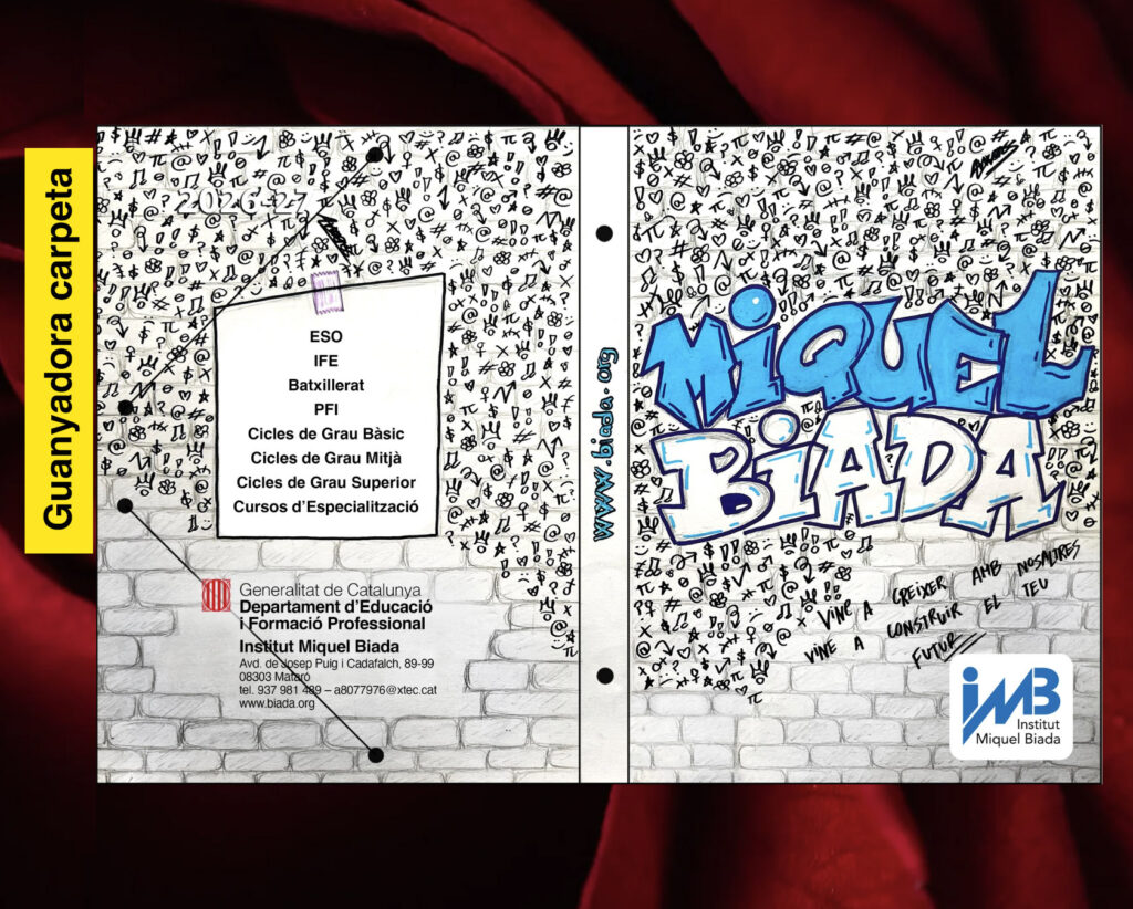 L'alumnat de la matèria d'Expressió Artística de 4t d'ESO ha acceptat el repte de dissenyar la imatge de la carpeta que ens acompanyarà el curs vinent. La proposta guanyadora ha estat la de l'Arwa El Baida, i aquest serà el disseny que portarem tots el proper curs.