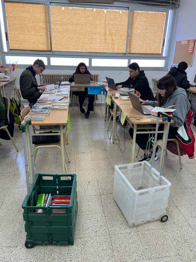 Estem a la 1ª fase col.laborant amb el departament de Llengües fem l'inventari del llibres que hi ha en algunes aules.