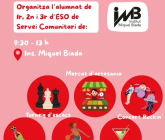 Us convidem a la 2a Festa ESS-BIADA! L'alumnat de 1r, 2n i 3r d’ESO de l'Institut Miquel Biada us convidem a la Jornada de l'Economia Social i Solidària Dissabte 24 de maig a l'Institut Miquel Biada 9....