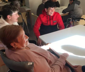 L'alumnat de 1r A, dins de la matèria de serveis a la comunitat, van anar a fer de periodistes per un dia i van visitar als residents de Can Boada....
