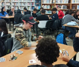 La biblioteca enguany s’ha convertit, a les hores d’esbarjo, en un espai més de lleure. Els alumnes no només poden venir a llegir i fer deures sinó que també poden fer jocs de taula (cartes, dòmino, dobble, mikado etc....